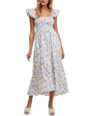Floral Flutter Sleeve Maxi Dress - Purple