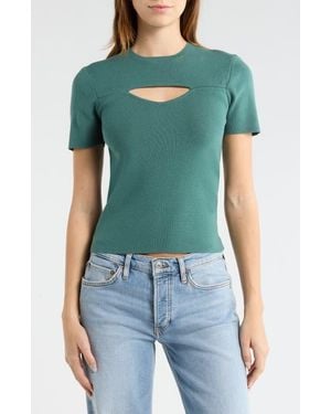 Cutout Short Sleeve Knit Top - Green