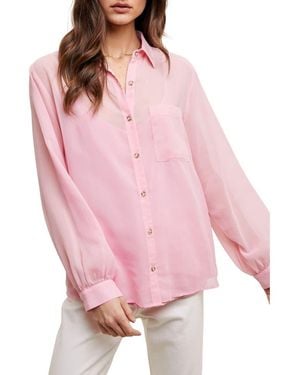 Chiffon Button Front Shirt With Cami - Pink
