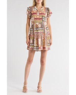 Tiered Short Sleeve Dress - Multicolor