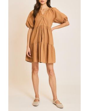 Button Front Tiered Dress - Natural