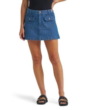 Western Patch Pocket Denim Miniskirt - Blue