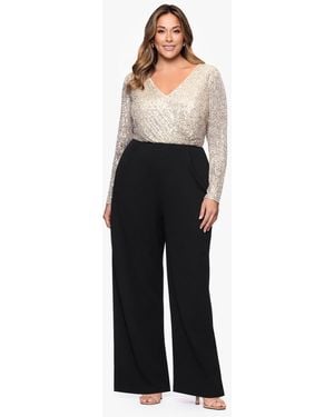 Plus Size Sequin Detail Long Sleeves Jumpsuit - Black