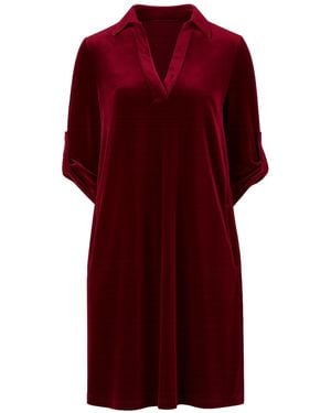 Cord Tunic Dress With 3/4 Sleeves And Pockets - Purple