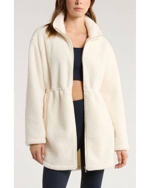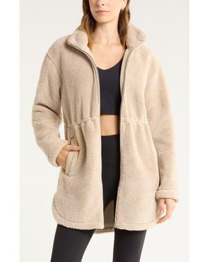 Faux Shearling Hybrid Quilted Long Jacket - Natural
