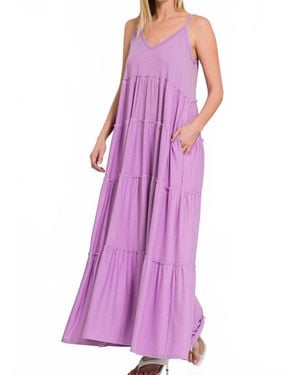 Frill Tiered V-Neck Maxi Cami Dress - Purple