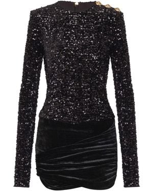 Short Draped Dress With Sequins And Velvet - Black