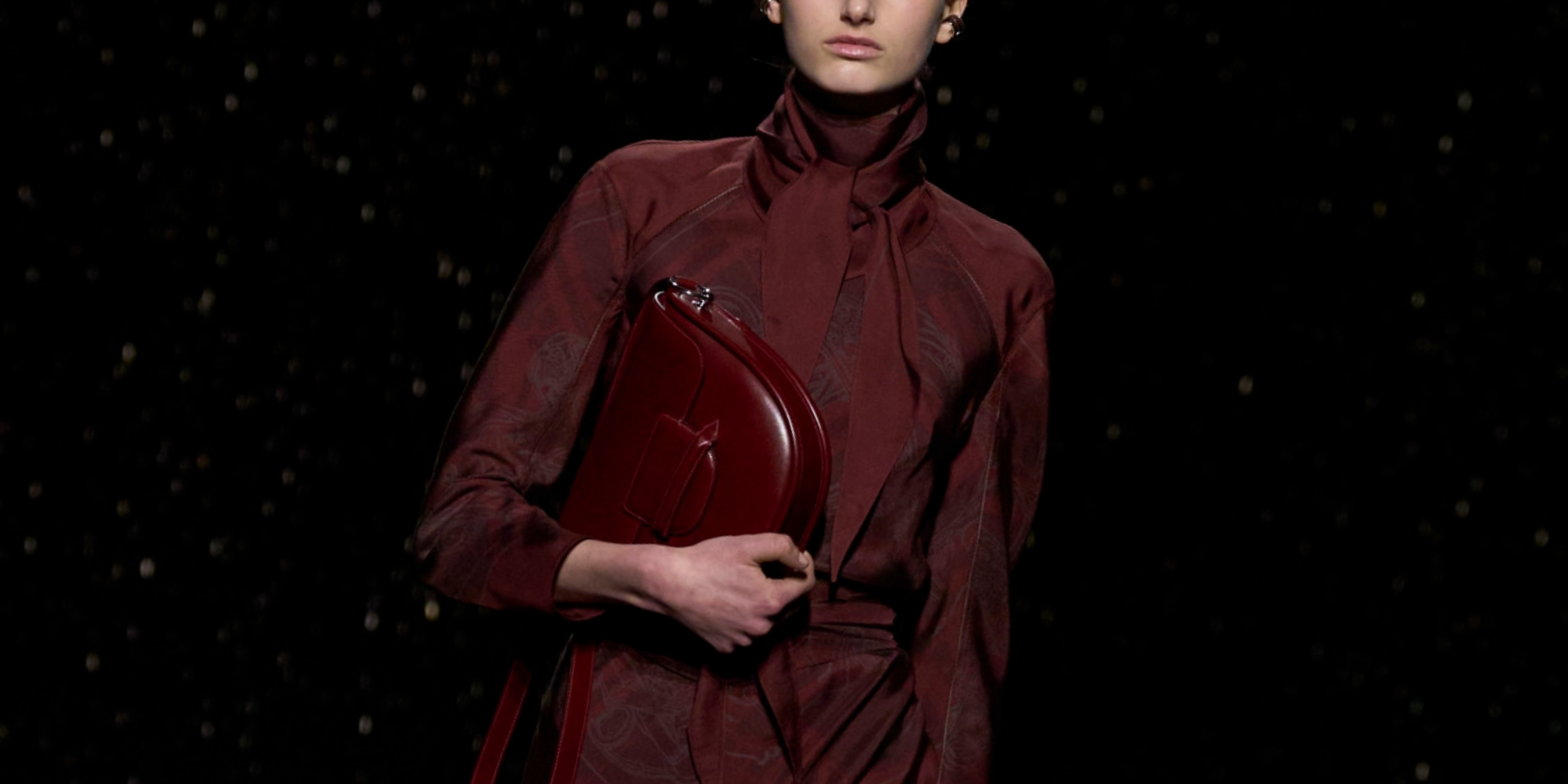 At Hermès, the tone was immediately set with the collection’s first three looks, when equestrians-turned-bikers walked out in head-to-toe leather ensembles of the deepest burgundy. At Nina Ricci, creative director Harris Reed infused the brand's romantic aesthetic with a modern twist, using the shade to further highlight the collection’s architectural shapes and sharp tailoring. Meanwhile, Victoria Beckham showed its versatility through tailored separates, fluid evening wear, and structured leather accessories.